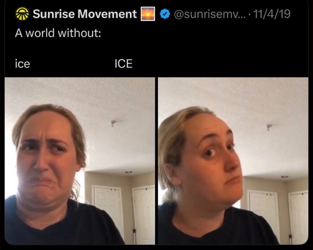 I love this meme. Everything about it is American. It’s Vine-era origin. The political shade made palatable, cool even, via comedy. The affinity for a drink so cold you can hear it accessory to the loathsome thought of being anywhere in any climate sipping on something at room temperature. Can you imagine? Gross. Offensive.